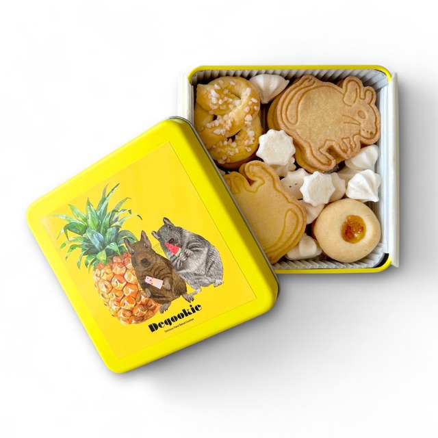 デグッキーが始まった頃、初めて販売したのが、このシンプルなベーシック缶でした。 新しいアグーチデグーのベーシック缶をお楽しみください。 今月のクッキーを焼いてくださったのは千葉県市川市にあるパティスリーシトロニエさんです。 新しいクッキーの味もリニューアル缶でお楽しみいただけたらと思います。